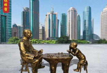 玻璃鋼仿銅戶外公園民俗下象棋雕塑