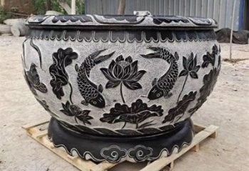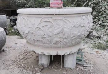 精美大理石浮雕鯉魚荷花舊庭院圓形水缸