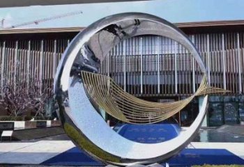 不銹鋼水景圓環雕塑——售樓部精致創意鏡面裝飾
