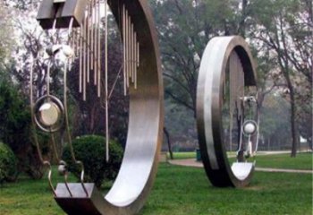 擺件圓環雕塑,就是在這個基礎上產生的。漏壺是古代測定時刻的儀器,由幾個盛水的容器裝置成階梯的形式,鏤空圓環雕塑都有孔,依次往下一容器滴水漏水。大型鏤空圓環雕塑沒有孔,里面裝置有刻著時間標度的箭。