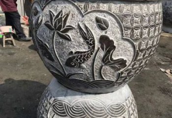 青石浮雕園林景觀花盆雕塑