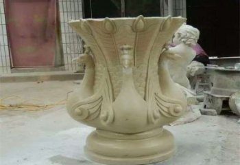 精美石雕浮雕龍花盆雕塑